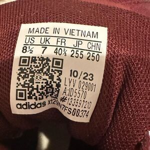 Adidas Burgundy White Canvas Sneakers Unisex Low-Top Trainers 3-Stripe Style 8.5