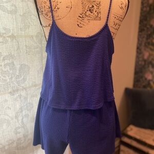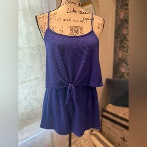 Chic indigo romper with tie-front. Sleeveless design. Ideal for casual wear. No size tag S/M