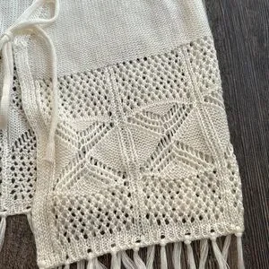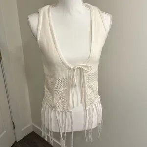 Boho White Western Style Crochet Fringe Knit Vest Junior’s Cream Size Small