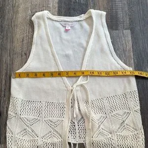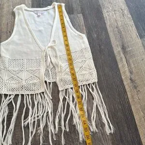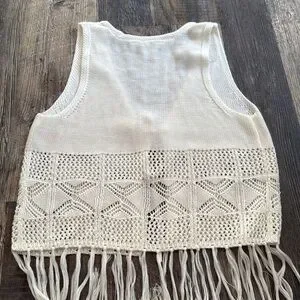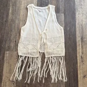Boho White Western Style Crochet Fringe Knit Vest Junior’s Size Small 3-5. Gently used, no flaws. Measurements in photos.