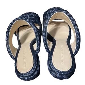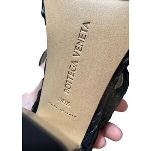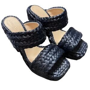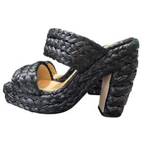 New Auth. Bottega Veneta Trinity Black Raffia Braided Platform Heel Sandals 38.5