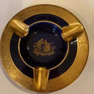 LIMOGES NAVY AND GOLD ASHTRAY FRENCH