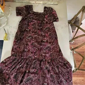 Anthropologie Lisabella Purple Paisley Maeve Tiered Maxi Dress Size M- B5