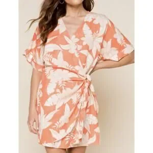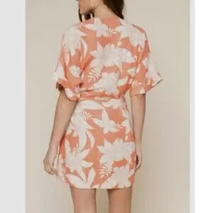 Amuse Society Mala Short Sleeve Floral Woven Linen Dress in Sunrise Size Large