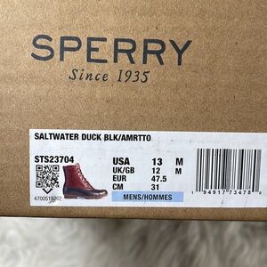 SPERRY MEN'S SALTWATER DUCK BOOT - BLACK/AMARETTO SIZE 13 NEW
