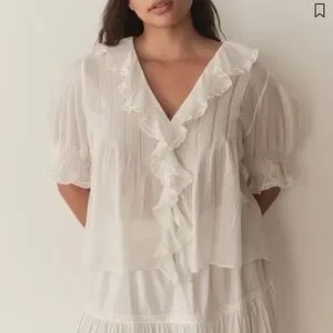 Elevate your style with the Women's White Ruffle Top. Featuring elegant ruffles and a classic design, this top is perfect for any occasion.
