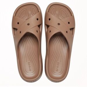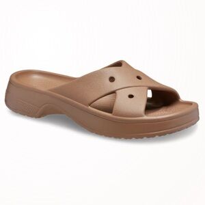 Comfortable brown slides with cross strap design. Perfect for casual wear. Bought them in DUBAI MAY 2025 NEVER USED