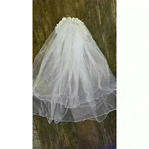 Vintage Beaded Wedding Gown Long Train And Veil Prestige Size Medium