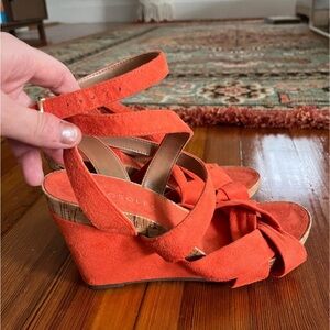 These Aerosoles sandals in vibrant coral are as comfortable as they are gorgeous! I love them so much but ended up rarely turning to them because I prefer flats. Like new condition.