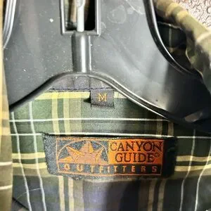 This Canon Guide Outfitters shirt combines a casual pearl snap style with a vibrant green, navy and yellow color scheme, perfect for everyday wear.