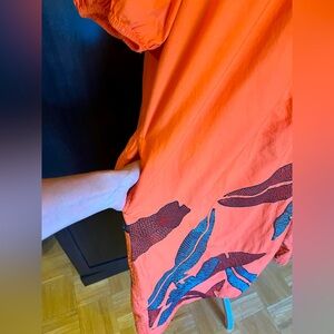 Anthropology One-Shoulder Embroidered Maxi Dress 2 pockets. 100% cotton Orange L