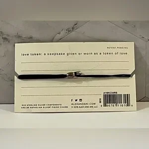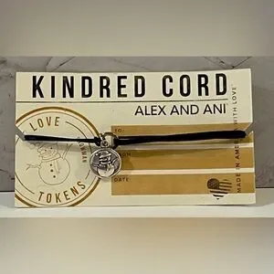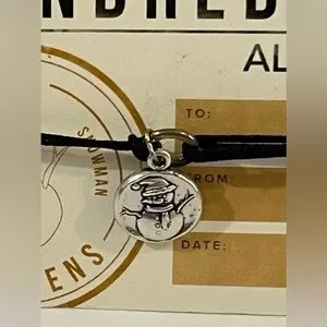 This stylish Alex and Ani bracelet features a sleek black cord and a charming silver snowman pendant. Perfect for adding a touch of elegance to any outfit.