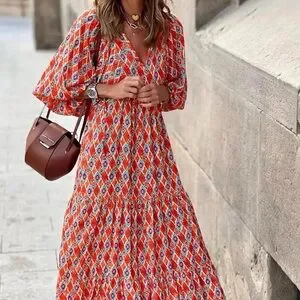 Embrace a bohemian vibe with this stunning maxi dress. Perfect for any occasion, this dress features a vibrant pattern that stands out. Ideal for those who love a touch of color in their wardrobe.