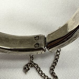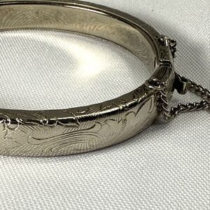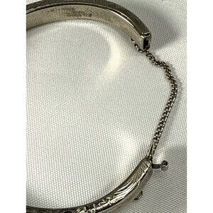 Vtg Victorian Revival Flower Silver Tone Safety Chain Hinged Bracelet Size 6