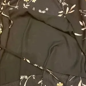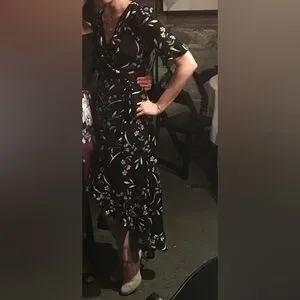 This wrap dress photographs REALLY well. It’s comfortable and is multi-functional. The skirt is lined. The sleeves come just above the elbows and have a lovely flow. Note the skirt is short in front and long in back with a ruffle all the way around. One small snag- see images. In photos I am 5’7” and about 135 pounds (34 B cup) for reference. There is no snap for the wrap top so larger chests may need a tank underneath.