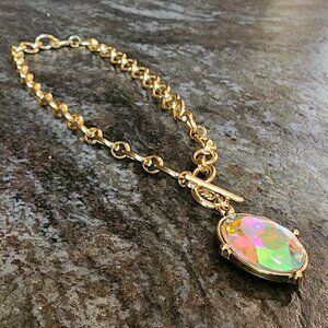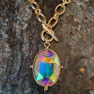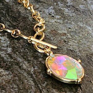 Etsy Iridescent Crystal Beaded Gold Tone Necklace. Colorful and bright. Excellent condition.