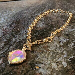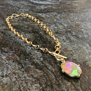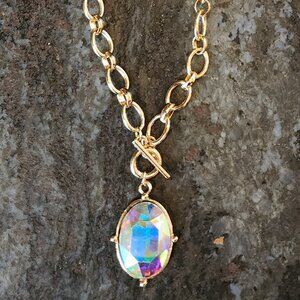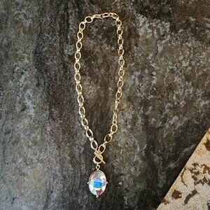 Etsy Iridescent Crystal Beaded Gold Tone Necklace
