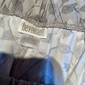 This pajama set combines comfort and style with its soft fabric and contemporary design. The gray and pink color scheme adds a touch of elegance, making it perfect for a restful night's sleep or lounging at home. Enjoy the cozy fit and modern appeal of this sleepwear essential. NWOT