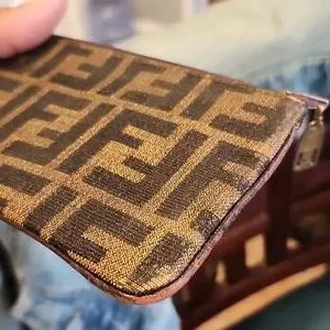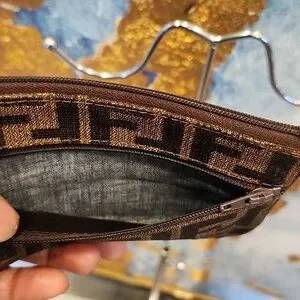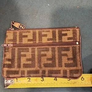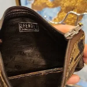 Vintage Canvas card holder or Coin Pouch, wear throughout but doesn't deminish the overall beauty and functionality of this rare Fendi item, 100% Authentic
