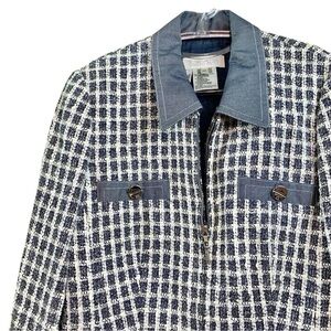 Escada Tweed Wool Blend Gingham Boucle Jacket Blue Ivory White Size IT 36 S