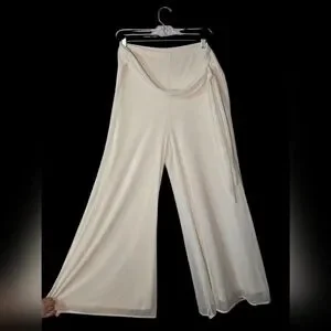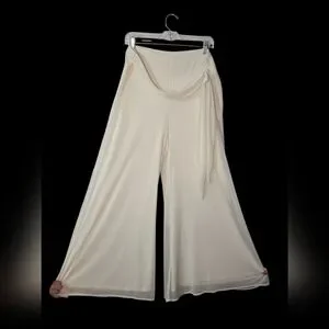 Onyx Nite Dressy Pants XL Solid White Wide leg Chiffon Overlay With Belt Lined