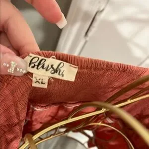 This elegant Blush camisole features a smocked bodice with a tiered, ruffled design, offering a chic and feminine look. The sleeveless style in a soft pink hue is perfect for adding a touch of romance to any outfit. Ideal for both casual and dressy occasions, this top is a versatile addition to your wardrobe.