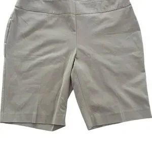 Experience the perfect blend of style and comfort with these Crown & Ivy Gray Bermuda Shorts. Crafted from a crisp cotton blend, these shorts offer a tailored fit ideal for both casual and business casual settings. The minimalist design ensures a sleek, modern look for any occasion.