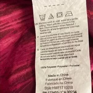 Garment care listed in pictures along with materials