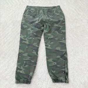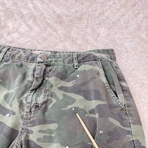 Sundry Pants Womens 29 Green Camo Jogger Star Print Tapered Zip Hem USA Cotton