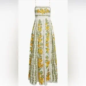 FARM Rio dress, tropical print maxi dress, beaded strap dress, vacation outfit idea, summer resort wear, Brazilian fashion, floor length cotton dress, beach wedding guest dress, tropical vacation dress, feminine summer dress, pleated maxi dress, sustainable fashion brand, spring 2025 fashion, colorful designer dress, trending FARM Rio, lightweight cotton maxi, boho summer dress, sold out FARM Rio, new with tags dress, Farm Rio Tropical Lightness