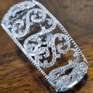 REPOSTED ESPO 925 Sterling Silver Cubic Zirconia Swirl Pattern Cuff Bracelet