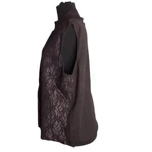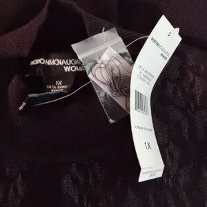 Norton McNaughton Size 1X Sweater Knit Top Black Lace Front Sleeveless