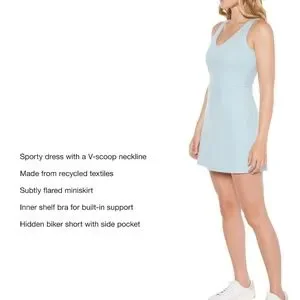 NWT - New with tag. Chic light blue sleeveless dress. Soft fabric. Shorts underneath with pocket. Built-in padded bra.