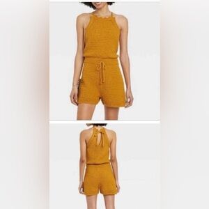 EUC- Universal Thread Mustard Knit/chrochet stretchy Romper, wore once