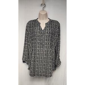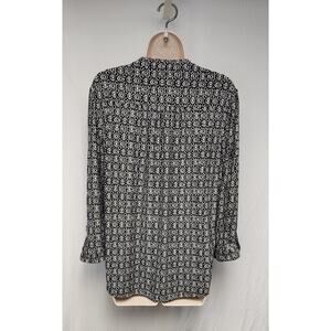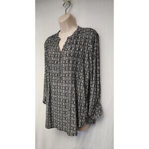 Westport Women’s Tunic Top Notched V-neck Blouse Boho Floral Black/White Size Large.