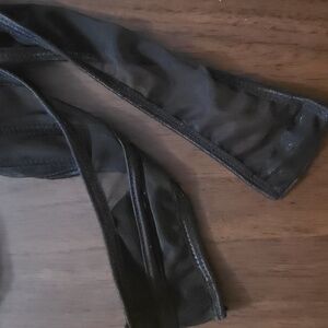 NEVER WORN, brand new tag removed. This black mesh bodysuit from Free People showcases a corset-style design with a strapless sweetheart neckline, offering a chic and structured silhouette. The piece is crafted with attention to detail, featuring defined boning and a very high-cut leg line to enhance the hourglass shape. underwire cups, thong cut, snaps at gusset. its a small but has lots of stretch, elastic strap in the back is adjustable as well so would also fit a medium. see measurements.