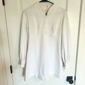 VINTAGE CUSTOM MADE Elegant White Lace-Trimmed Beaded Long Sleeve Mini Dress