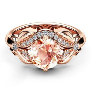 "Big Round Champagne White Zircon Vintage Rings for Women, EVGG1511