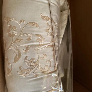 New in packaging 4 piece bedding accessory completer set. Beautiful ivory/cream color with satiny embroidered floral design. Gorgeous finishing touch to any comforter or bedding set.