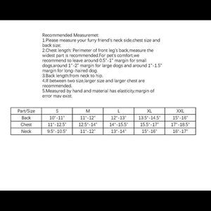 🐕 [Measurement]:To better fit your dog dogs,please do measure the size of your dog and compare to the size chart before placing order, and priority reference chest girth.If your dog's measurement is between two sizes,larger size is recommended.