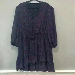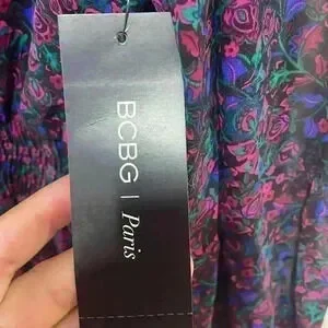 BCBG Paris Collared V-Neck Smocked Tiered Dress, Size XXL NWT