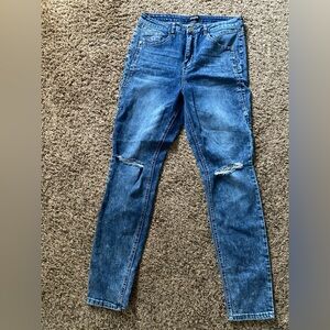 Experience the perfect blend of style and comfort with these Bebe Blue Skinny Jeans. Crafted from premium denim, they feature a flattering skinny fit that accentuates your silhouette. The classic blue hue makes them a versatile addition to any wardrobe.size 7 stretch