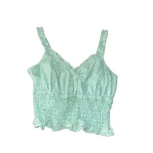 Natural Soul Green Smocked Ruffled Tank Top