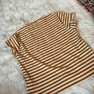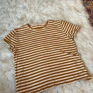 Stylish striped tee in mustard and white. Ideal for casual outings.
