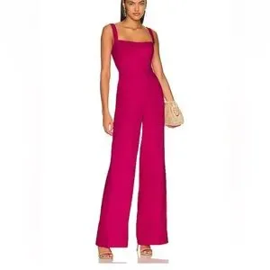 NWOT SALONI Rachel Pink wide leg Jumpsuit in Bright Berry Linen