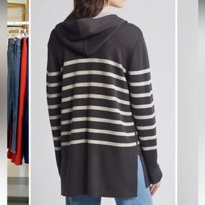Splendid Sydney Cashblend Black/Gray Stripe Reversible Cardigan With Hood Sz Large
