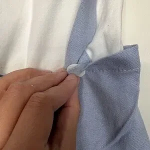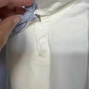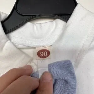 Chic toddler outfit featuring a white shirt and blue accents. Perfect for any occasion.