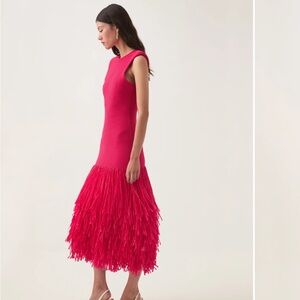 Aje Rushes Raffia Knit Midi Dress in Deep Fuschia Pink size small