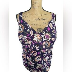 Lands End Purple Floral Swim Tankini Size 24W/ DD Adjustable Straps Build In Bra