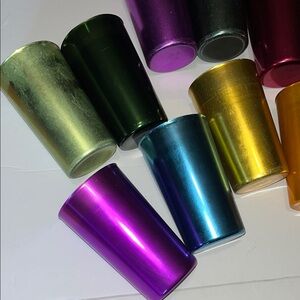 Add a splash of color with these vibrant vintage Italian metallic tumblers. Includes shades of purple, pink, blue, green, silver and gold.